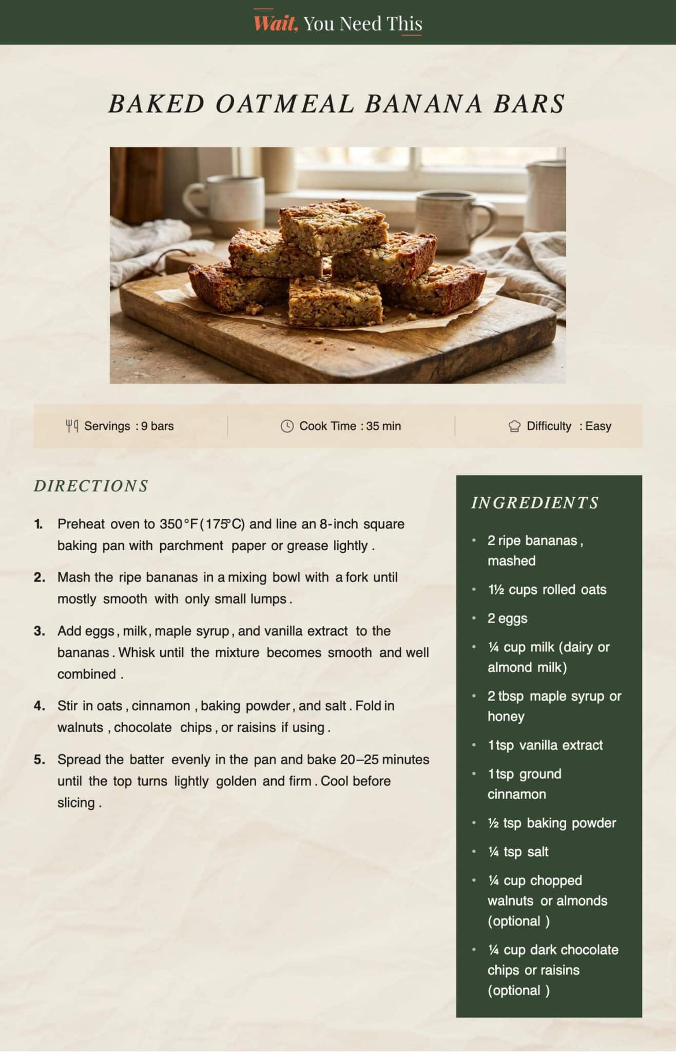Baked Oatmeal Banana Bars: Steps to Make