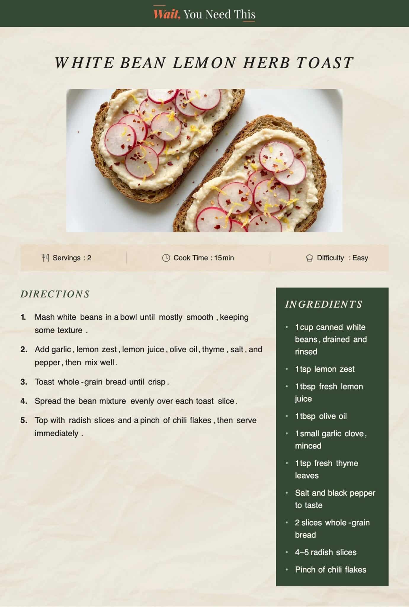 White Bean Lemon Herb Toast: Steps to Make