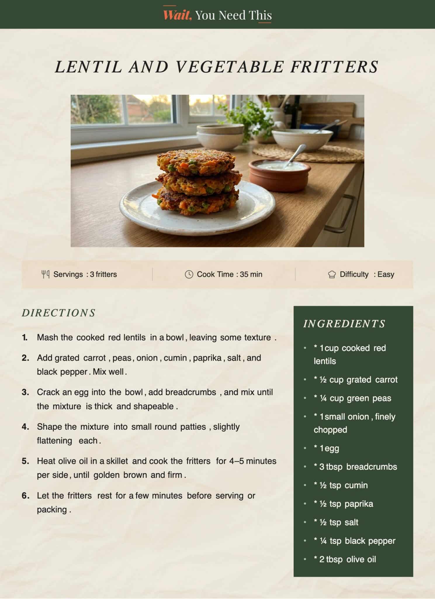 Lentil and Vegetable Fritters: Steps to Make
